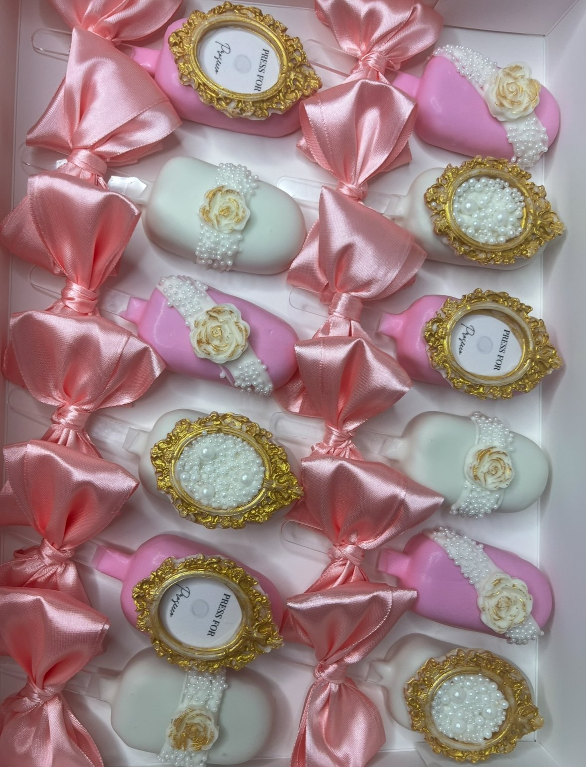 Please keep in mind that when I ask for inspo pictures I am looking for your decorations, balloon colors, centerpieces, backdrops, any cake you may have ordered(if not from Treats Studio), exact colors of your event. I will look at others work for inspiration, however I will not recreate any other bakers/treat makers work.